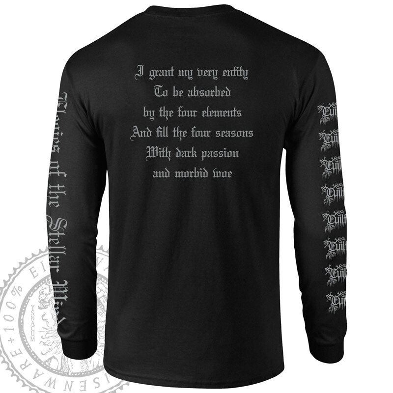 The official 'Elegies of the Stellar Wind' longsleeve, featuring the album artwork printed in black, white, grey and matte silver, plus prints on both sleeves.
