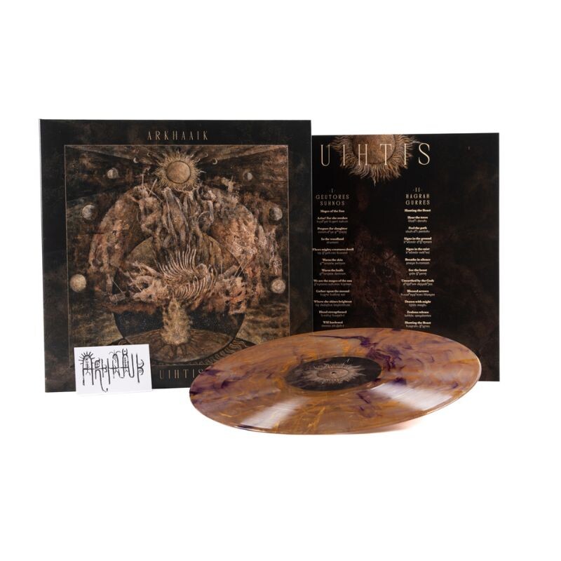 On UIHTIS (the hunt), Arkhaaik - nomen est omen- explore the theme of hunting in a Bronze Age context. The album opts for an unconventional and refreshing approach, allowing it to rise from the ranks of a concept album and ascend to a truly metaphysical, yet distinctly human experience. To achieve this, the act of "the hunt" is explored on two distinct levels: While half of the album is dedicated to the very real act of hunting an animal and the ceremonial slaughter of the sacred creature, the other half takes a different approach by exploring the theme on a transcendental level – here the sun „hunts“ the moon and vice versa.