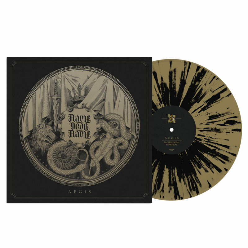 "Aegis" is a work thematically divided into two parts. The first part, entitled "The Millennial Heartbeat", details the genesis of the ocean and the thanatography of the land, a testimony of the forces of nature and its frailty alike, performed in three movements and featuring a classical epic doom approach, rife with gargantuan riffs and percussion as well as soaring clean vocals, yet interspersed with thoughtfully placed and paced clean sections. Serving as a contrasting and complementary second part of the album, "The Wolves and the Prioress" consists of four movements focusing more on acoustic folk elements, further enriching FLAME, DEAR FLAME's engrossing sound, and details the story of a feral child that falls into the custody of a sage prioress.