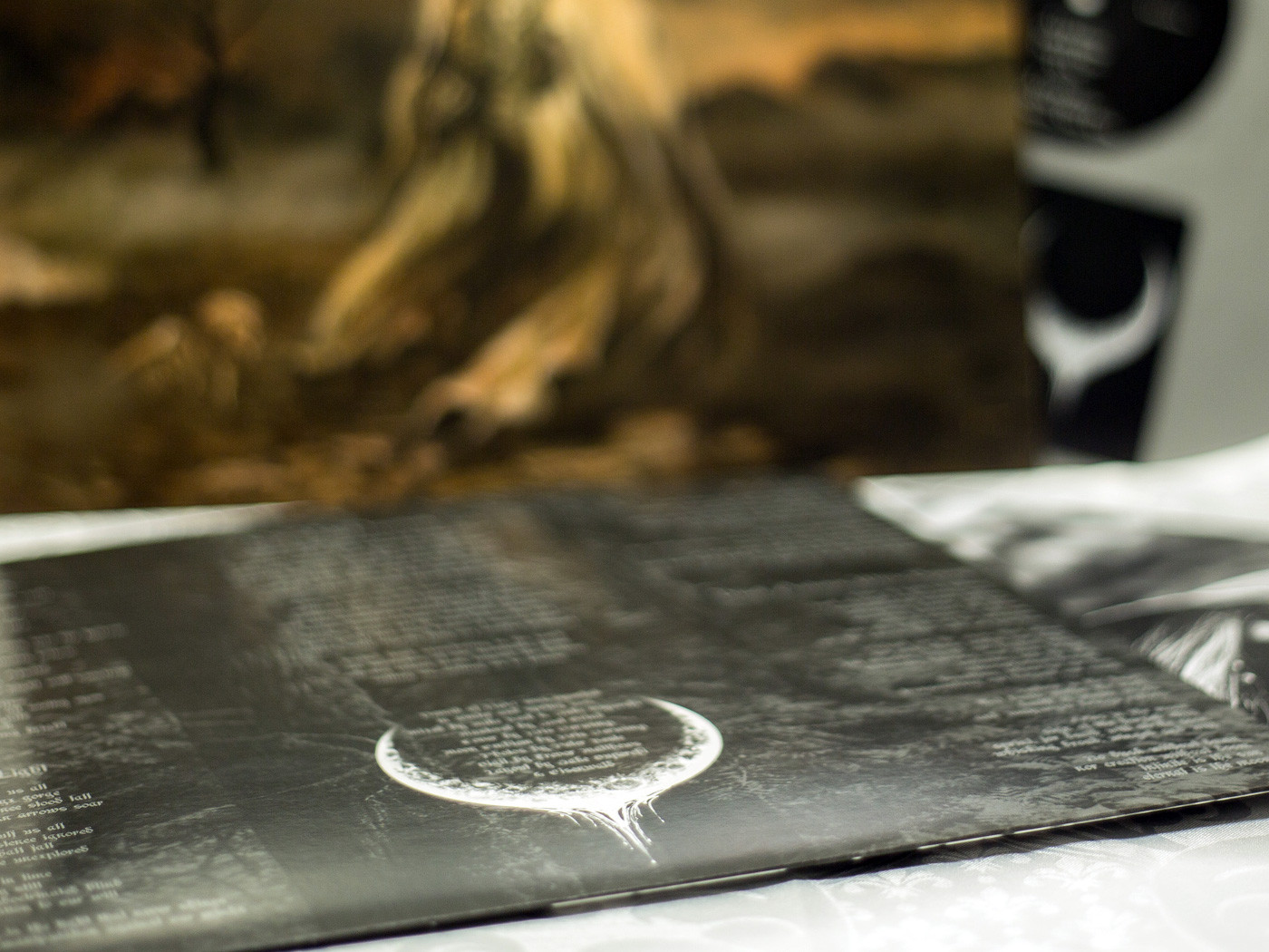 Solid regular 12" jacket with silver print, thick inner-sleeve with silver print, A2 poster, and a designed download card for the album.