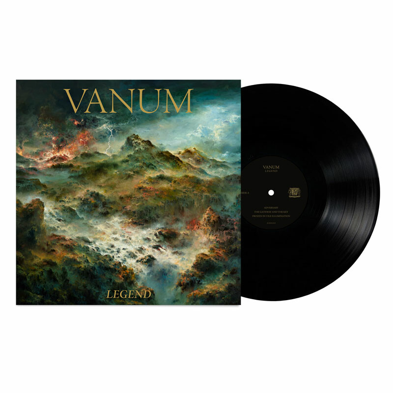 The core of the band's sound remains unchanged: unyielding and grandiose Black Metal that traces a hellish through line from the power of mid-era Bathory, through the riff-craft of the Hellenic masters, to the bitter fury of the Slavic greats. But amidst the pantheon of familiar influences new touchstones become ever more apparent. With Legend, the continuum is charted further back and to new lands. Within the throes of the Black Metal maelstrom, echoes of classic heavy metal are increasingly recognizable, further bolstering Vanum‘s towering melodic sensibility and epic songwriting. Coupled with a deeper and expanded exploration and use of ambience and synthesizer, the album is imbued with a richness and sense of majesty that underpins each of its five towering compositions.