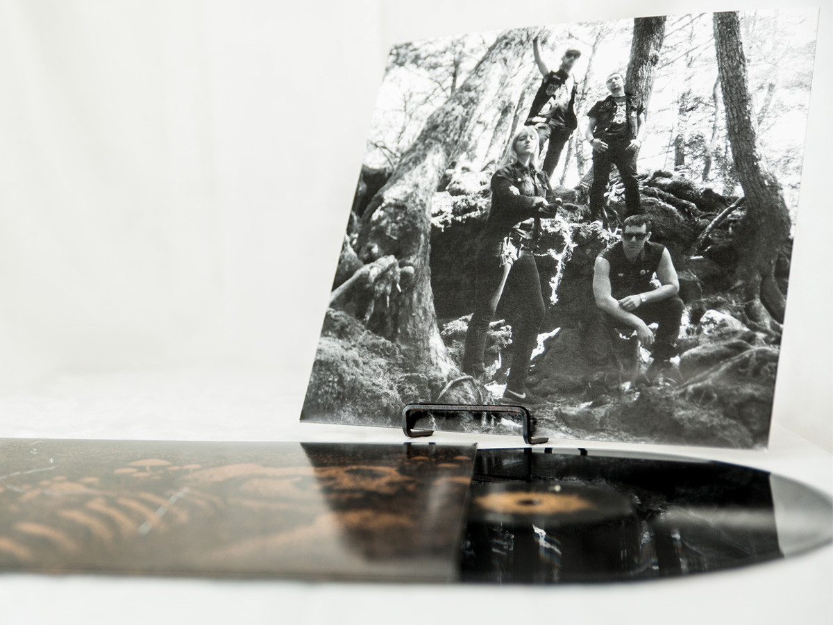 Packaging: solid outer-jacket with metallic ink and thick printed inner-bag, black inner-sleeve with poly layer, A2 poster,dropcard with free digital version of the album