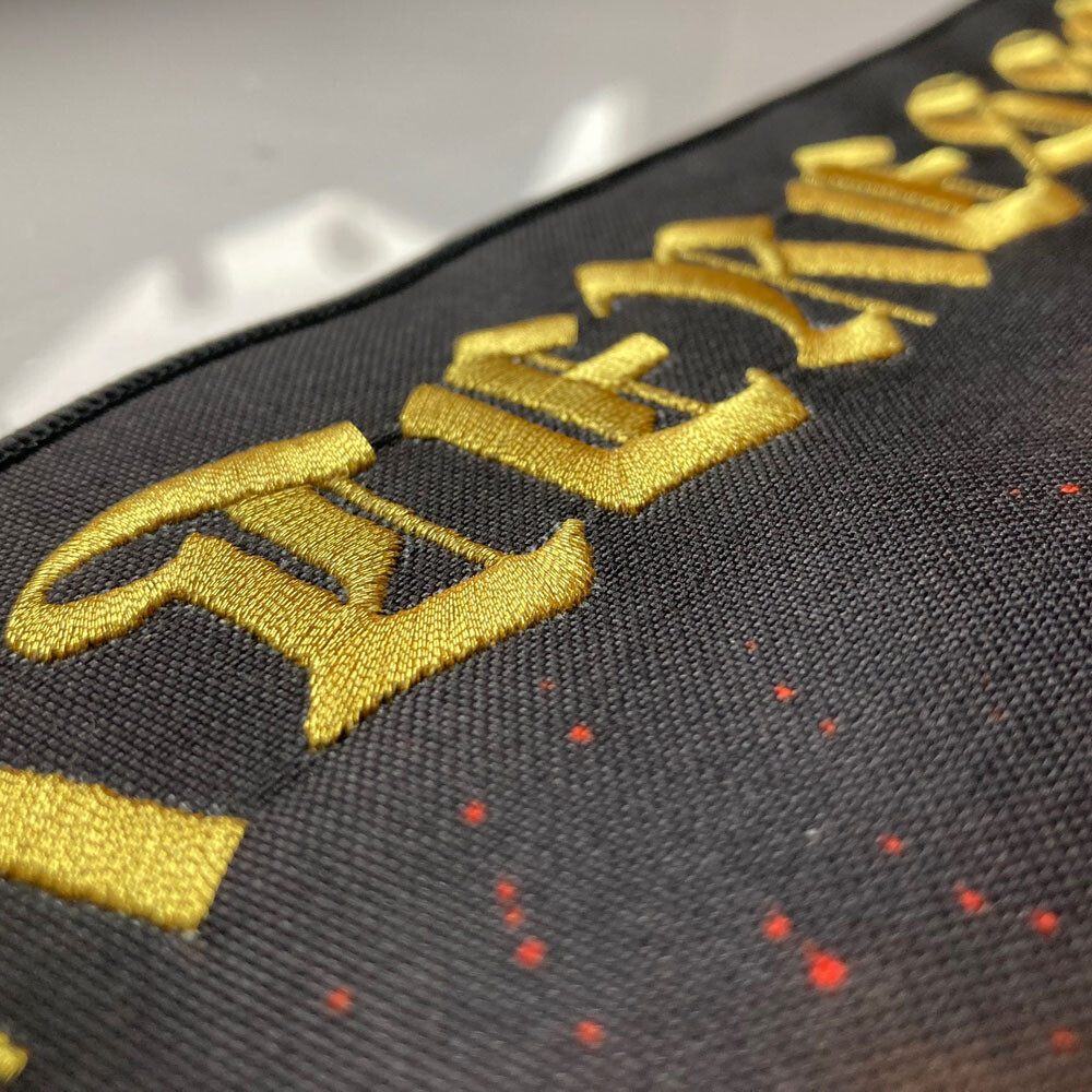 Deluxe design, rich color with golden embroidered letterings.