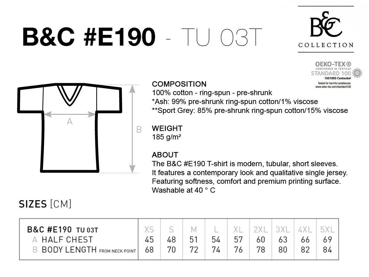 Printed on quality 190g B&C shirts. Soft & comfortable, good fitting fair wear textiles.